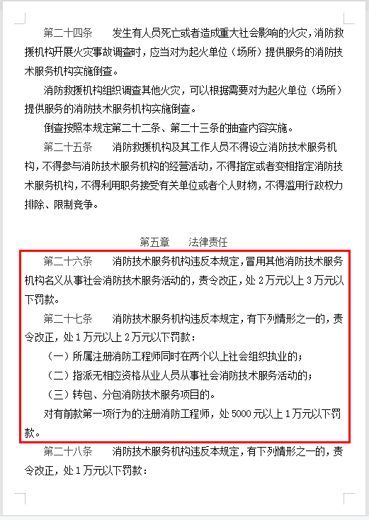 第二十六條 消防技術(shù)服務(wù)機構(gòu)違反本規(guī)定,冒用其他消防技術(shù)服務(wù)機構(gòu)名義從事社會消防技術(shù)服務(wù)活動的,責(zé)令改正,處2萬元以上3萬元一下罰款。