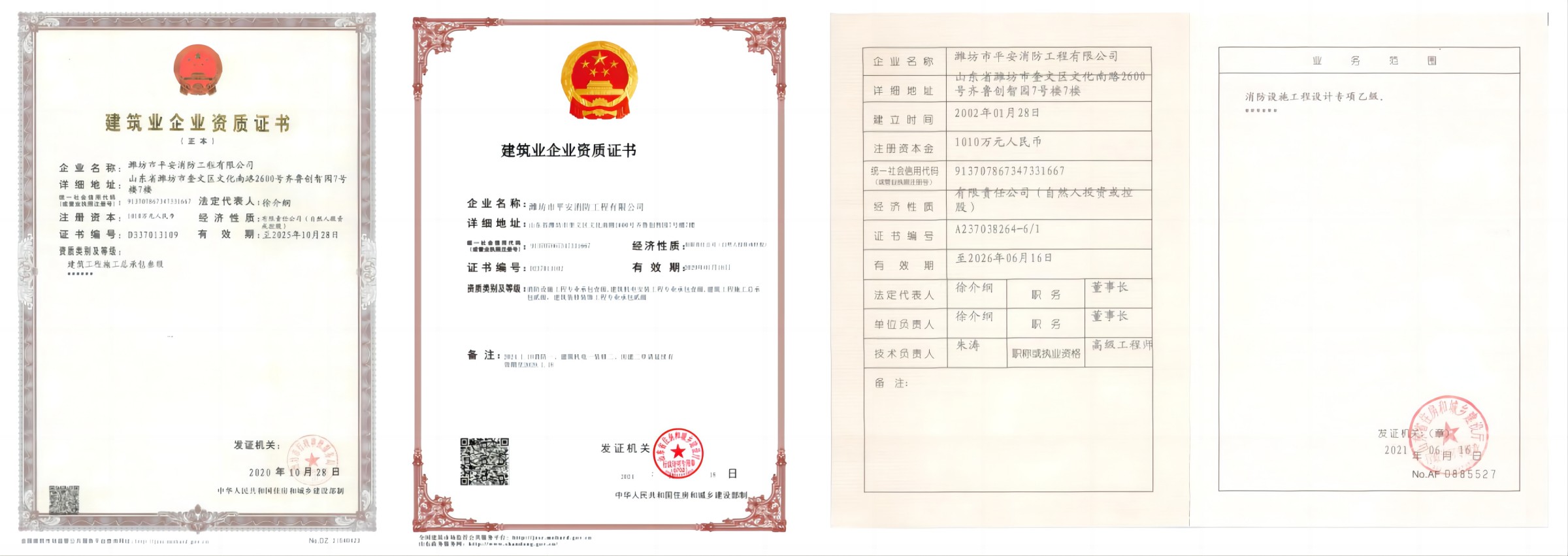 成為全濰坊市唯一一家消防設施工程專業(yè)承包壹級資質(zhì)